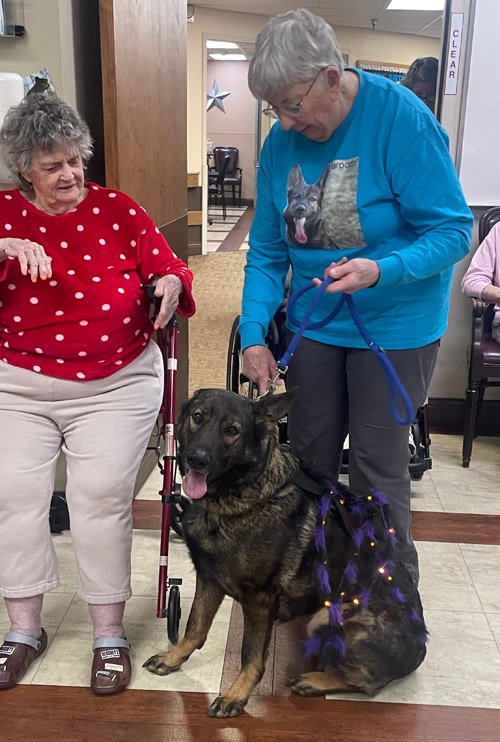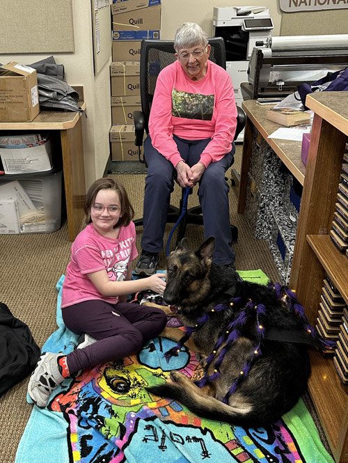 “K9 Jamboree has been called to duty to assist K9 Quizz in escorting notorious criminal Miss Keona to Trunk or Treat event at the high school. Trunk or Treat is put on by the City of Sundance, clubs and local businesses. Jamboree, Quizz and Keona (sheltie) represented the Crook County 4H Dog Program.”