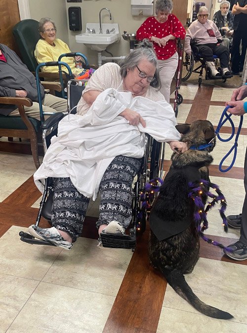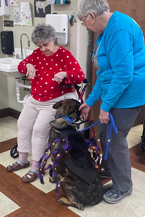 My Varoom! (4 years old, VV litter) wasn’t quite as excited wearing it on a visit to Westview Healthcare Center, though she was a huge hit with the residents.