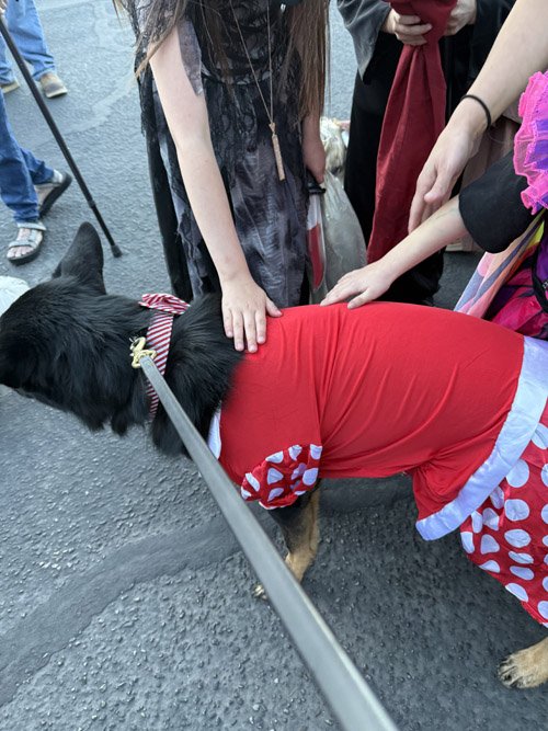 “I don’t think Rainey is too thrilled with her Minnie Mouse costume! Yesterday was the first day I put it on her. I’ll start getting her used to it so she’ll be okay wearing it for the costume event on the 30th.”