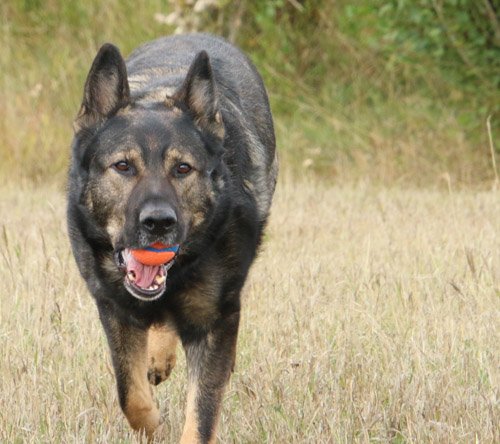 Lovely has arthritis in her feet and doesn’t chase the ball much anymore. For ball sessions, I pair her with Justice. When she gets tired of chasing the ball, she comes and sits by me and watches Justice go back and forth. Clouds covered the sun during their playtime so the photos are darker than some of the other play sessions’.