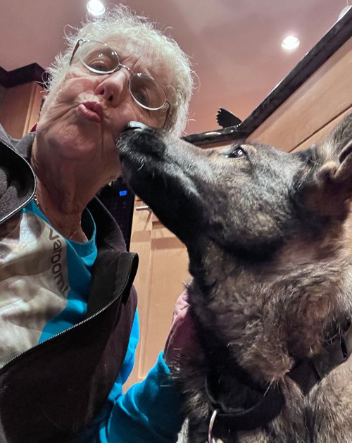 Varoom! earned her AKC Canine Good Citizen title (pictured) and her Therapy Dog certification in February 2024.