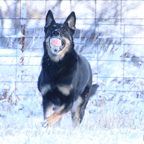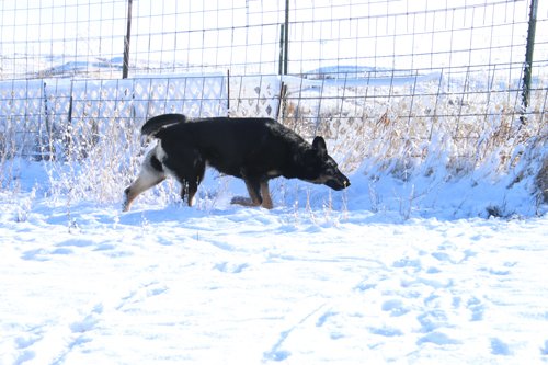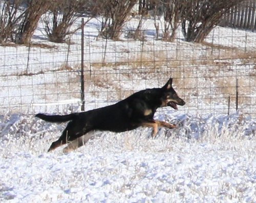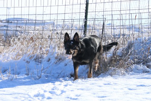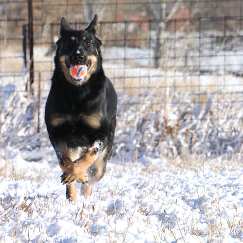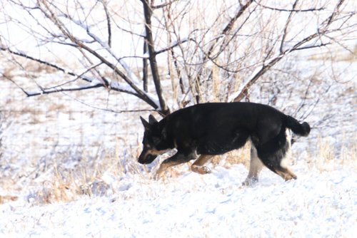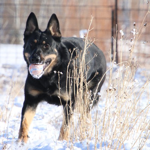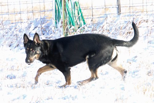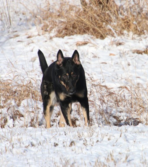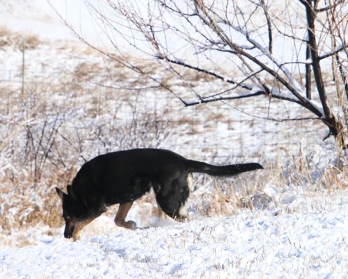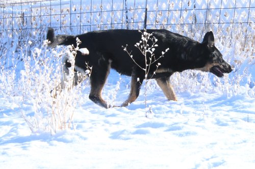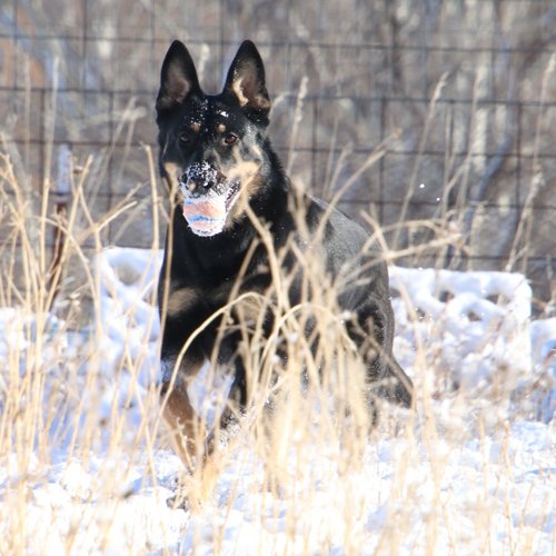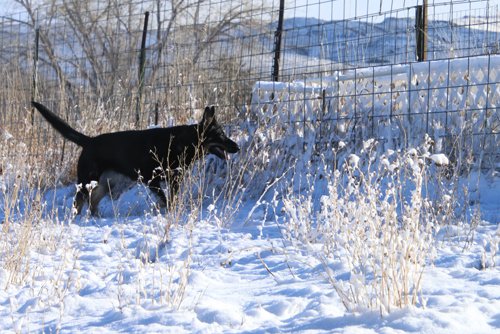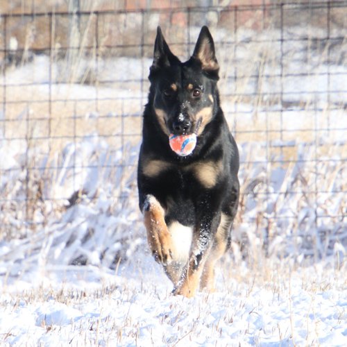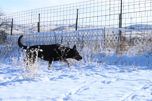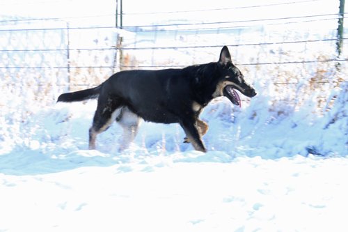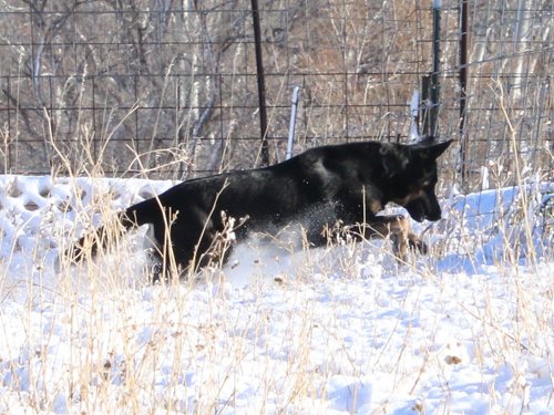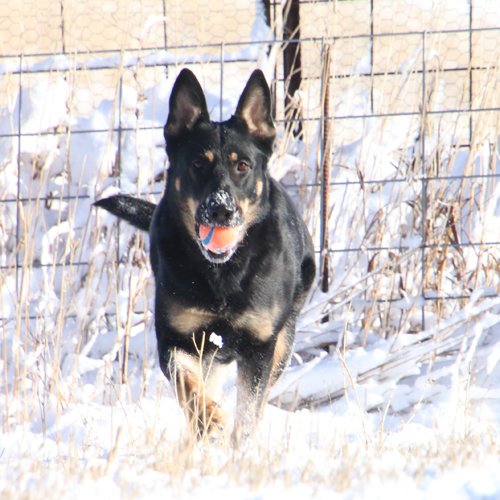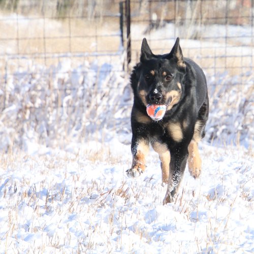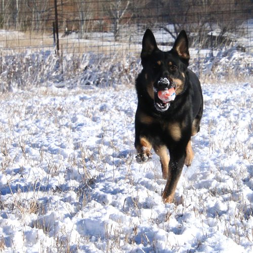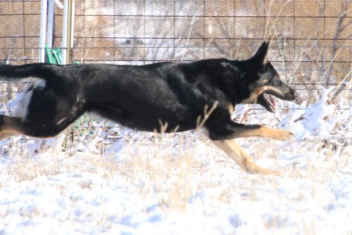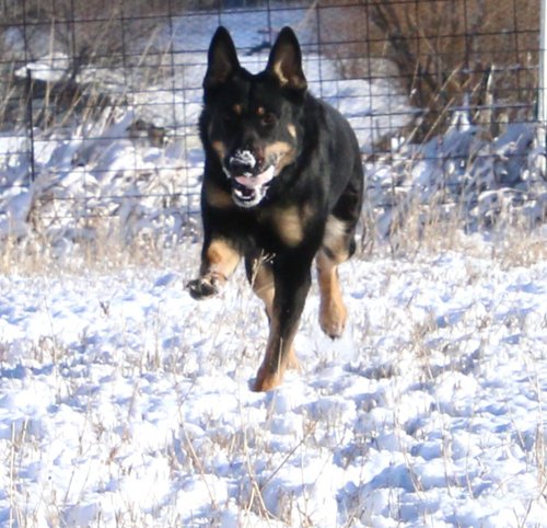 Zeal is built differently and moves differently than any GSD I’ve had. She’s usually quite graceful, except when she’s using her nose. Then she seems to forget where her legs are.  I caught a bunch of photos of her in that non-graceful stage, as she was searching for her ball.  What I didn’t get, and probably never will unless someone comes to photograph as I throw the ball, were the kangaroo leaps she makes as I throw the ball and she’s trying to follow its passage through the air. I got a lot of search photos because she kept taking off before I threw the Chuck-It and didn’t see where the ball went.  A few times I had to go out and show her the general area to search.  She’d find it and race me back to my chair and wait for me to get there to throw it again.  A couple of times the ball bounced into the puppy obstacle run I have gates at each end so the big dogs can access the run when a ball goes in there.  I got some good photos of her trying to figure out to turn away from the ball in order to get to it – and then proudly exiting the run to bring me the ball.