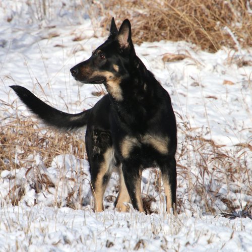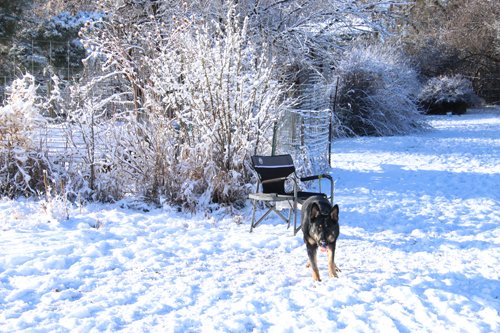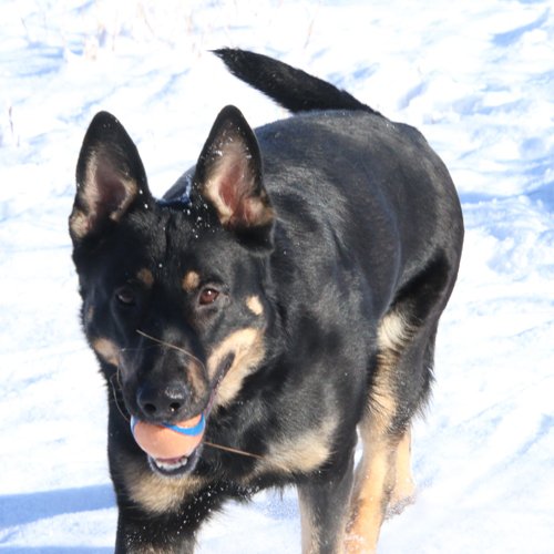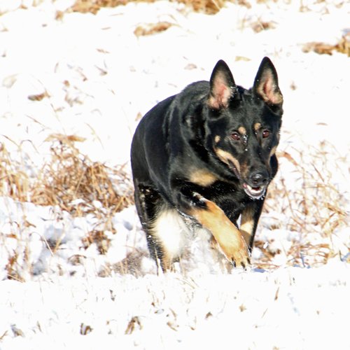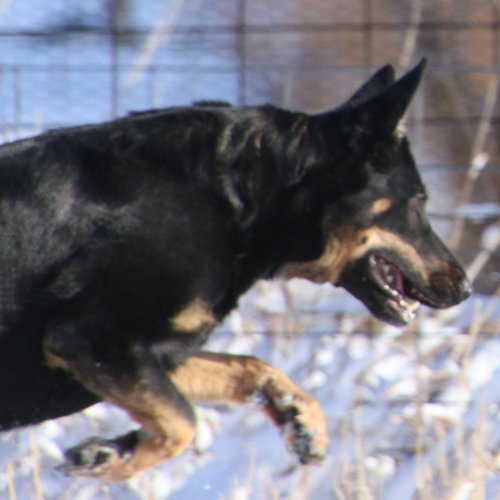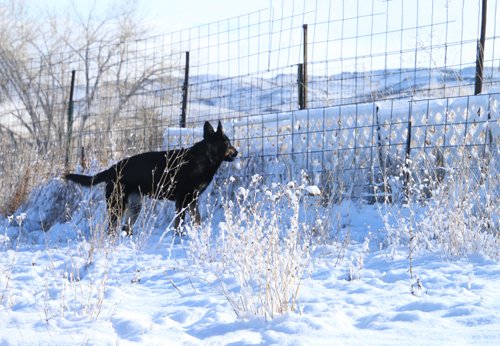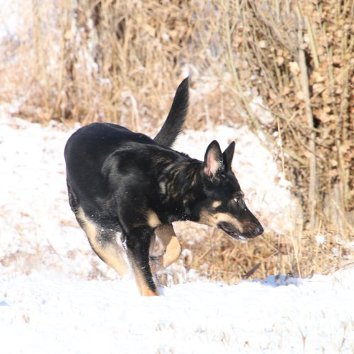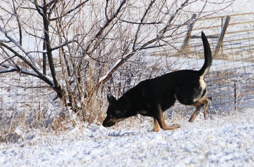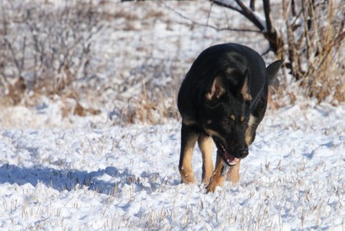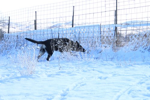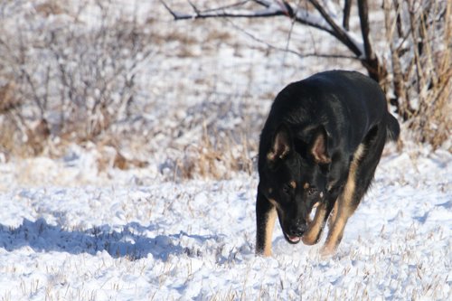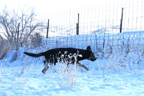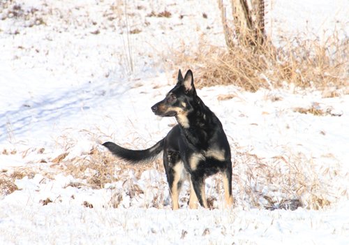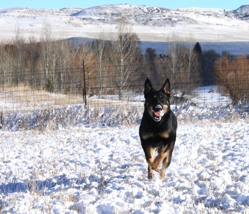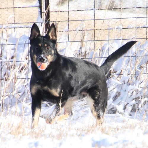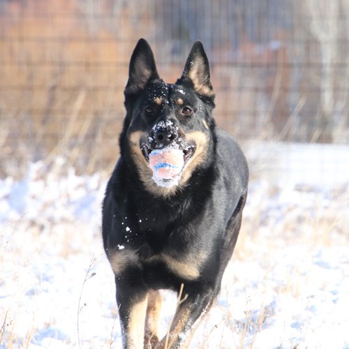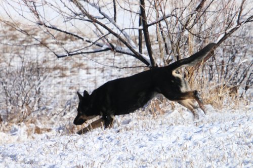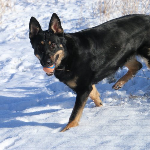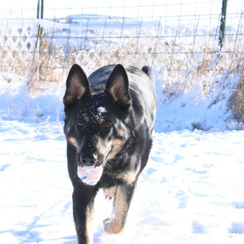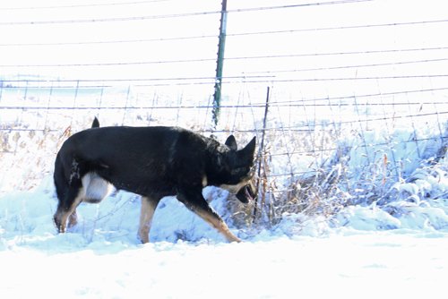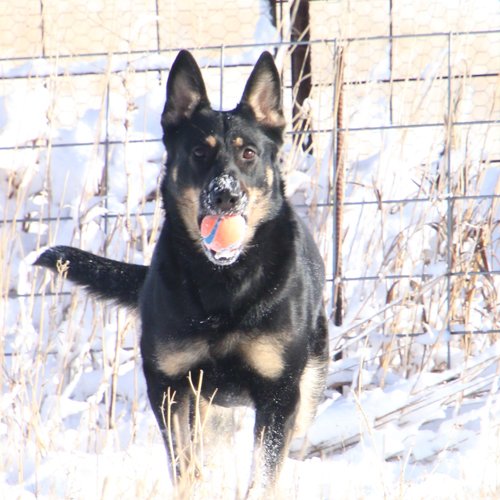 Zeal is built differently and moves differently than any GSD I’ve had. She’s usually quite graceful, except when she’s using her nose. Then she seems to forget where her legs are.  I caught a bunch of photos of her in that non-graceful stage, as she was searching for her ball.  What I didn’t get, and probably never will unless someone comes to photograph as I throw the ball, were the kangaroo leaps she makes as I throw the ball and she’s trying to follow its passage through the air. I got a lot of search photos because she kept taking off before I threw the Chuck-It and didn’t see where the ball went.  A few times I had to go out and show her the general area to search.  She’d find it and race me back to my chair and wait for me to get there to throw it again.  A couple of times the ball bounced into the puppy obstacle run I have gates at each end so the big dogs can access the run when a ball goes in there.  I got some good photos of her trying to figure out to turn away from the ball in order to get to it – and then proudly exiting the run to bring me the ball.