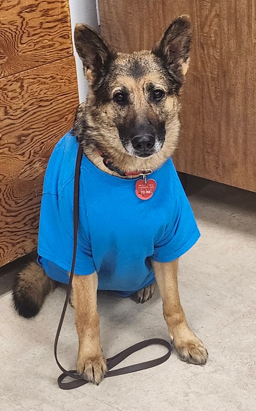 “Loki is doing great. Vet says he is in great health for his age. Good teeth worn but good shape. No sag in his posture. He is a little slow moving in rear hips, but vet is happy with them at his age and breed.”