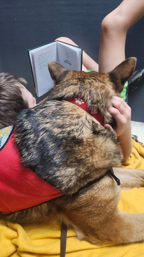 Jamboree is a VERY busy therapy dog.  See Jamboree’s trading cards