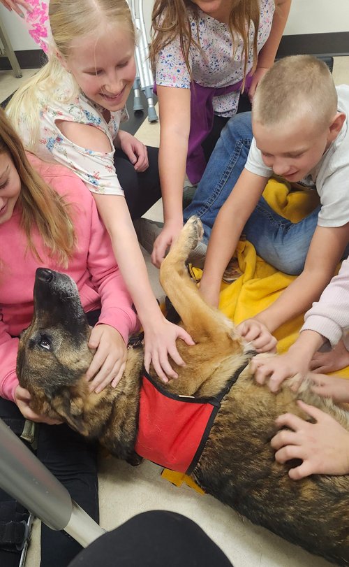 Riker was a Search & Rescue dog in NW Wyoming, a member of Jackson Hole Search Dogs.  Riker was field-certified in wilderness, live find and recovery (land cadaver).  He was joined by Booker (AAA litter) who is training to be a Search & Rescue dog.)
