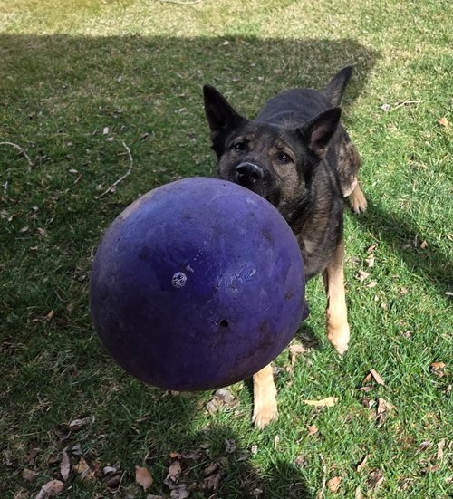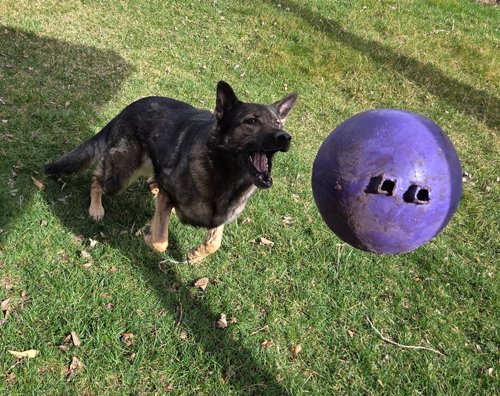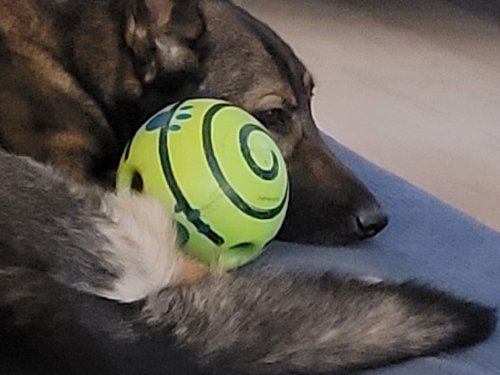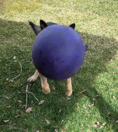 Photo 6: “Echo’s favorite ball. Makes a bunch of funky noises when it rolls.”