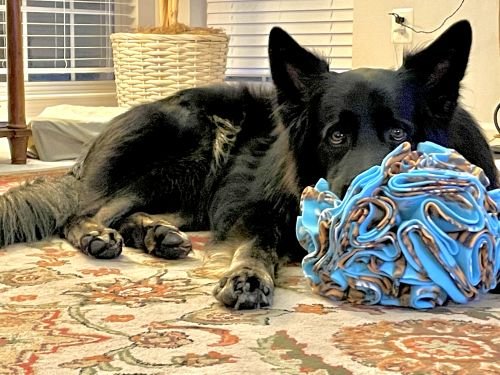 Mr. Green (“Kellan”) went to New York to compete in nosework and will also train in agility, herding, and be a therapy dog – her second dog from me. Miss Yellow (“Taryn”) went to New York to compete in obedience, agility, nosework and possibly tracking & Schutzhund. Mr. White (“Jax”) went to Washington, DC to be a service dog for a veteran. Brown (“Talon”) to her home in southeast WY was trained as a service dog and placed with a handler when he completed all his training. Miss Pink (“Lucca”) went to Montana to be a companion – her second dog from me. Miss Lilac (“Elsa”) went to southwest WY to be a companion and therapy dog. Miss Orange (“Tirzah”) went to Colorado to be a companion and Reading Dog (therapy dog for children). Mr. Blue (“Maximus”) and Mr. Turquoise (“Gunnar”) went to California to a family who already have or had 4 of my dogs; Mr. Blue went to the parents while Mr. Turquoise went to one of the adult sons. Miss Tan (“Roxanne”) went to southern Colorado for Search & Rescue.