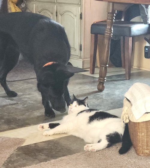“I just had to send this…this is how Talon and Steve spend a good part of each day. He loves to curl up at Steve’s feet.”