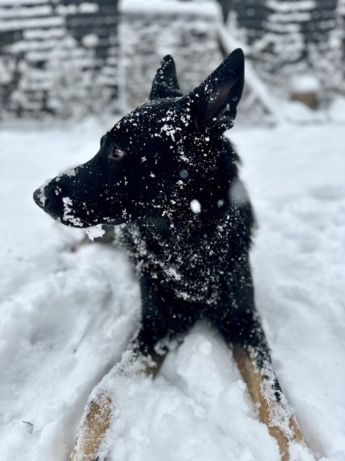 Photos 1-2: “In his element!! Our first real snow.”