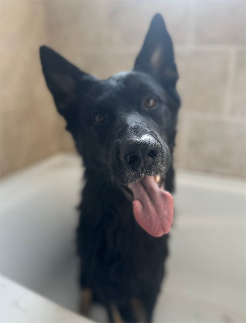 Photos 3-4: “Pre-Christmas bath. He enjoyed the sun while drying off.”