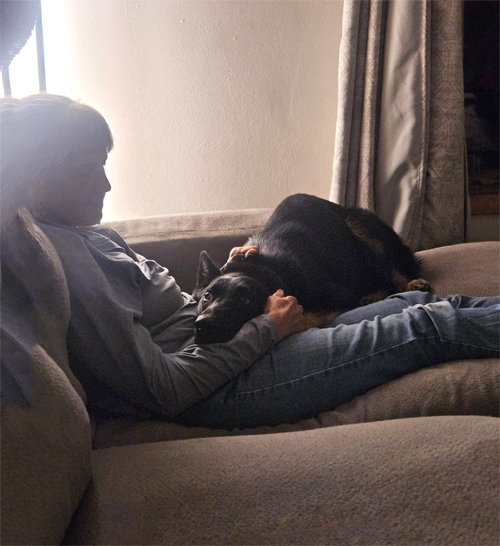 “Ve just got back from the groomer’s and wanted you to have one of his birthday pictures. He camps out in my office with me these days, so he gets lots of hugs.”