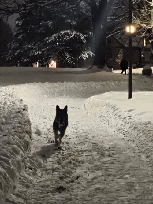 Photos 2-3: “A bit blurry! A lot of snow to play in tonight!!!”