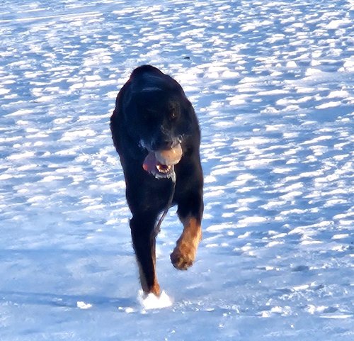 12/20/25 Pascha’sSnowy Playtime: We had rain that turned to snow overnight and woke this morning to a gorgeous snow-covered world. I decided to take photos before the sun evaporated the sparkling flocking from the grass, fences and branches. Cloud cover was still pretty heavy from last night’s storm, but the lighting was good enough – and it was 25 degrees so I could work the camera, which I can’t do well if I have to wear gloves. I have to throw the ball with the ChuckIt, drop it, then then grab the camera and try to photograph before the ball holds the ground, which just can’t be done with gloves! The clouds began breaking up during Pascha’s play time so I got some really cool photos in a variety of light qualities.