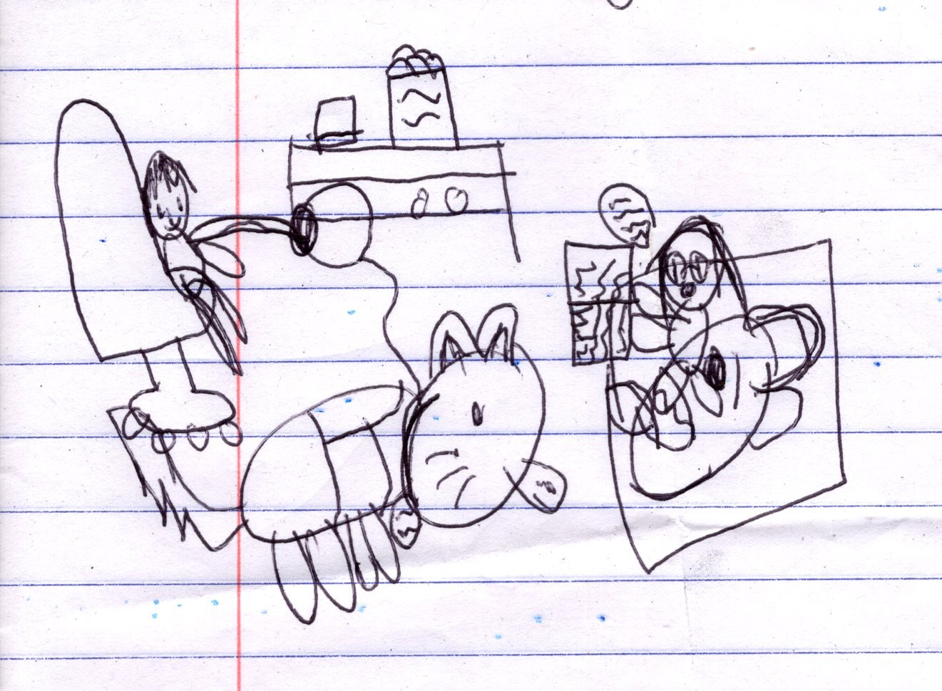 10/625:  Letter from a 4th grader  The dogs got a sweet letter from one of the kids who read to the dogs at Tongue River Elementary.  She included a great drawing of her reading to my dog, including me sitting in a chair beside them – and the table holding my bag of dog supplies.  Amazing detail for a 4th grader!