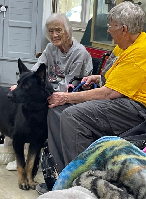 9/15/25: Pascha (2 years 5 months) and I on a therapy dog visit to Westview Healthcare Center