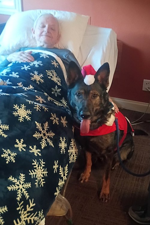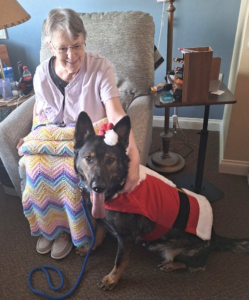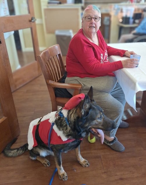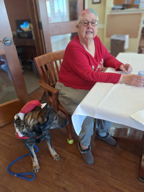 12/25/25: Justice (4 years 6 months) on a Christmas Day therapy dog visit to Green House Living