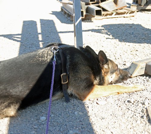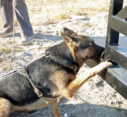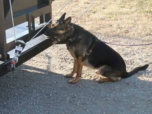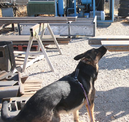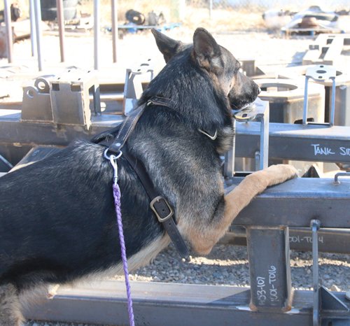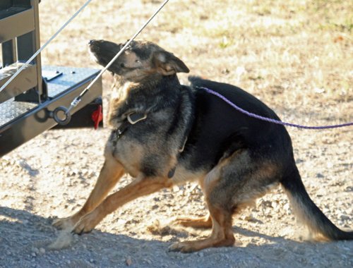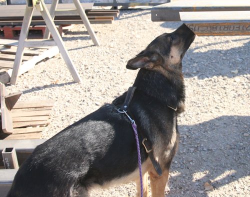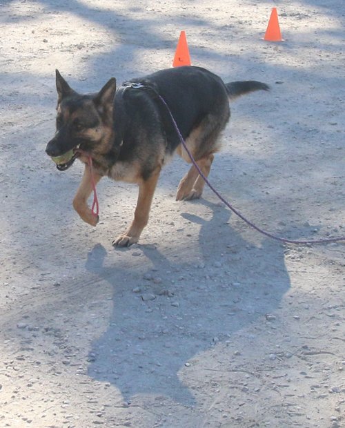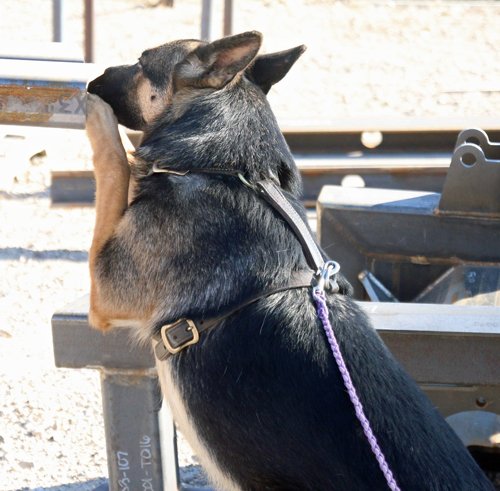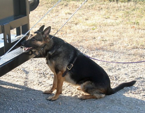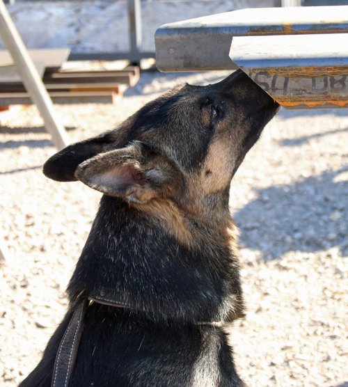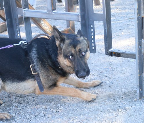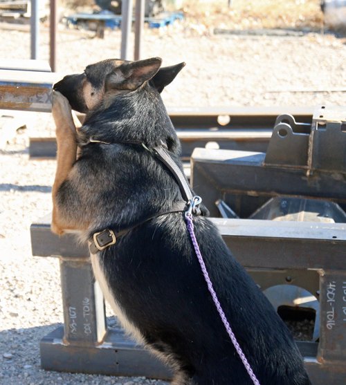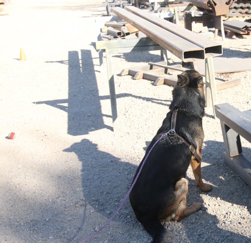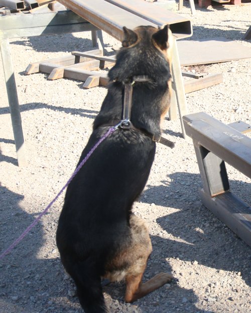 Yesterday the smoke from the wildfire was so bad that we didn’t train. The sky was clear early this morning, though by the time we finished smoke obscured the mountains and was moving down to us. Hopeful did quite well today. Denise got some fantastic photos of her expression as she waits to be released from an indication. She had us laughing at her antics.