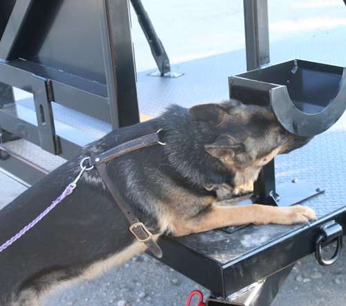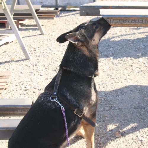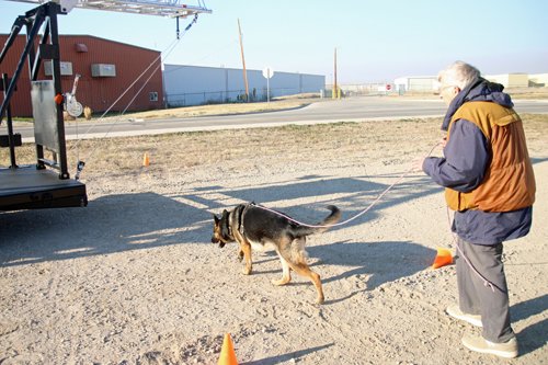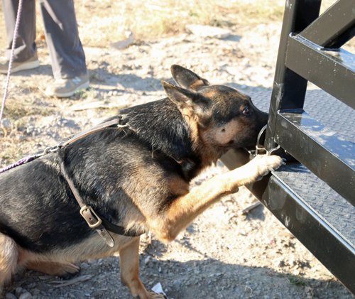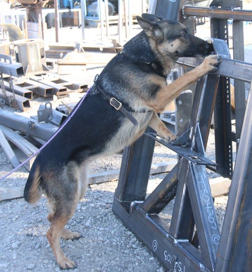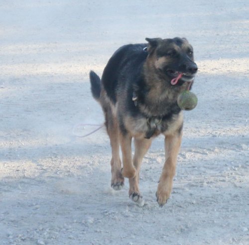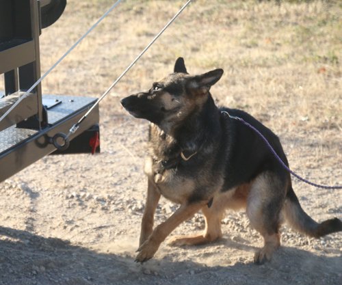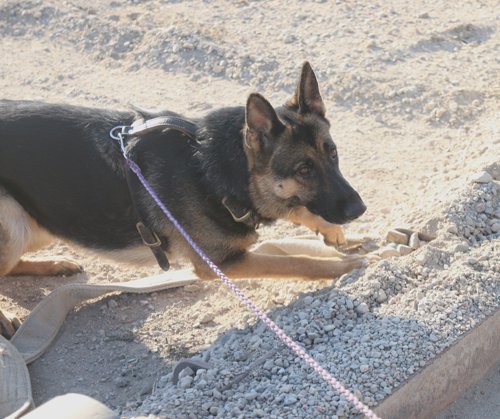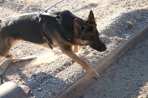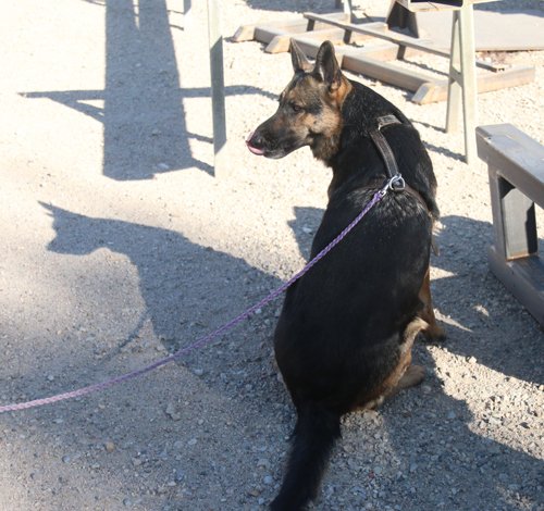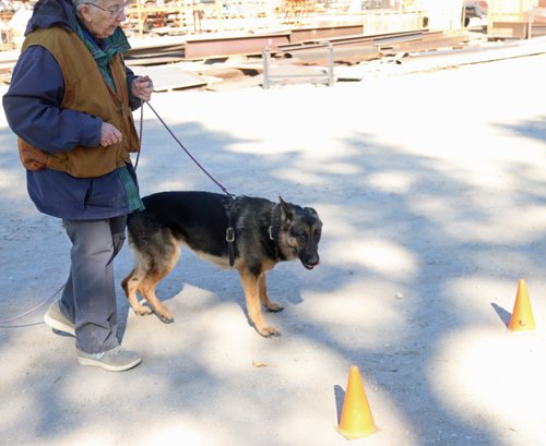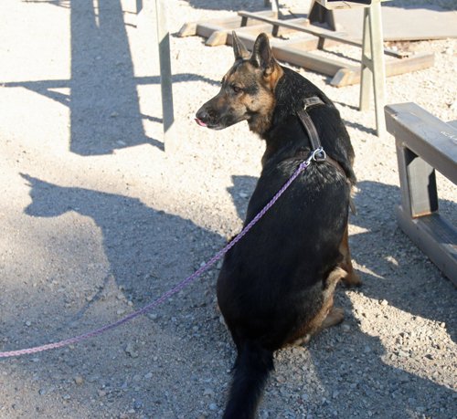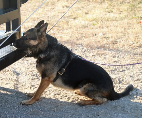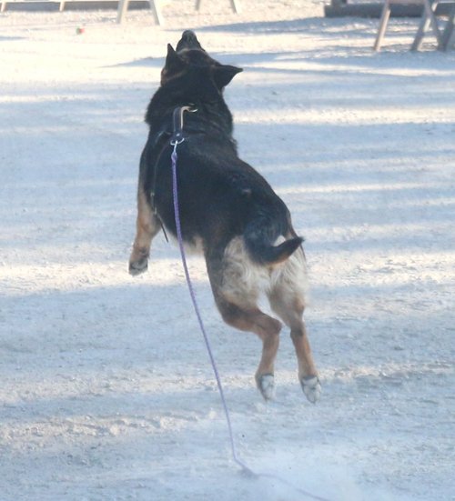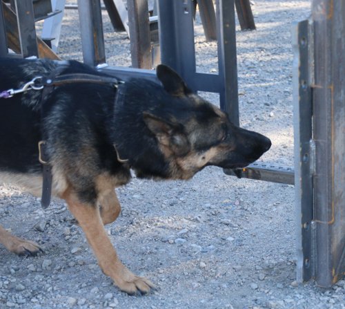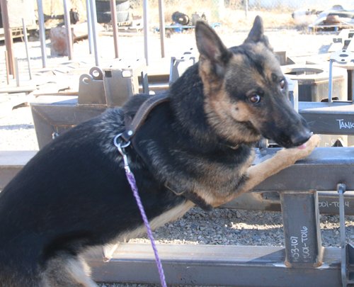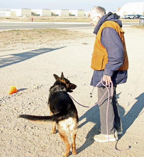 Yesterday the smoke from the wildfire was so bad that we didn’t train. The sky was clear early this morning, though by the time we finished smoke obscured the mountains and was moving down to us. Hopeful did quite well today. Denise got some fantastic photos of her expression as she waits to be released from an indication. She had us laughing at her antics.