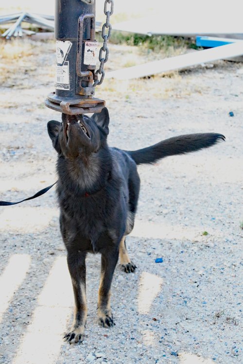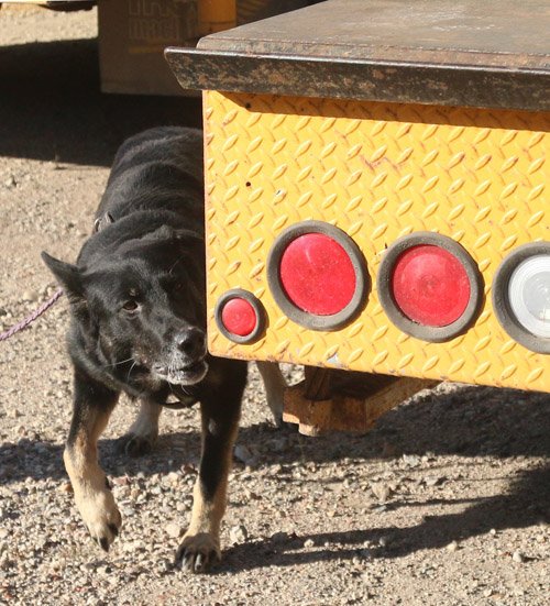Pascha is really getting into the game.  On one search, she jumped onto a flatbed trailer as she tried to find the hide.  Good girl!