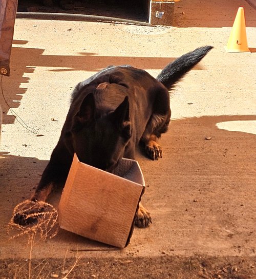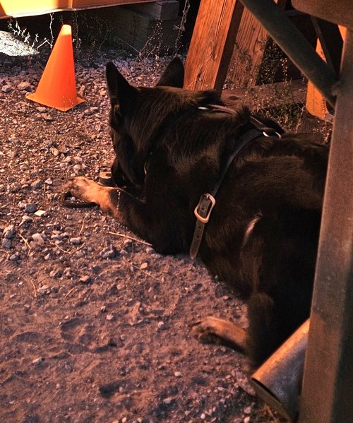 All the previous nosework training photos have been taken when my friend, Denise, and I trained together. Denise went to visit her siblings in mid-July, only to have her sister become seriously ill. Denise is still in Minnesota caring for her sister. I continued training a day a week, though it’s sure not much fun by myself.