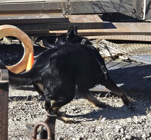We set two separate search areas. All the dogs do search 1, then we move to search 2. You can usually tell the end of one search if you see some ball retrieving. The start of the second turn is usually shown by a retrieve photo ending the first session – or me putting their harness on by the start cones for the 2nd search.